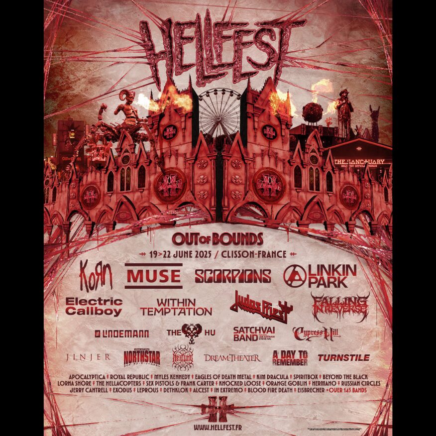 Créé en 2006 à Clisson, le Hellfest est devenu l’un des plus grands festivals de musiques extrêmes en Europe, accueillant chaque année 240 000 spectateurs venus du monde entier. Reconnu pour son ambiance unique et sa scénographie spectaculaire, il fait désormais figure de référence internationale, bien au-delà de la scène metal. L’édition 2025 a réuni plus de 200 groupes sur six scènes pendant quatre jours, avec en têtes d’affiche Linkin Park, Muse, Korn et Scorpions. Elle a confirmé le statut du Hellfest comme rendez-vous incontournable de l’été musical et comme le plus grand festival français, tous styles confondus.